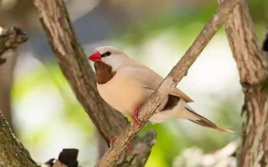 - Appearance: Features a grey head, black bib, and a long, sharply pointed tail. The eastern subspecies (Heck’s Grassfinch) boasts a red beak, while others have orange or yellowish tones.