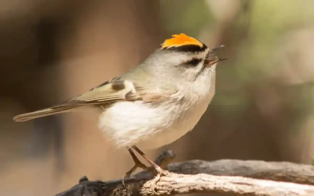 Tiny and constantly moving, Golden-crowned Kinglets are winter-only visitors to Arkansas. They flit through conifers and wooded areas, often high up, feeding on small insects. Look closely to see their golden stripe on top of the head—more visible when they raise their crown feathers.
